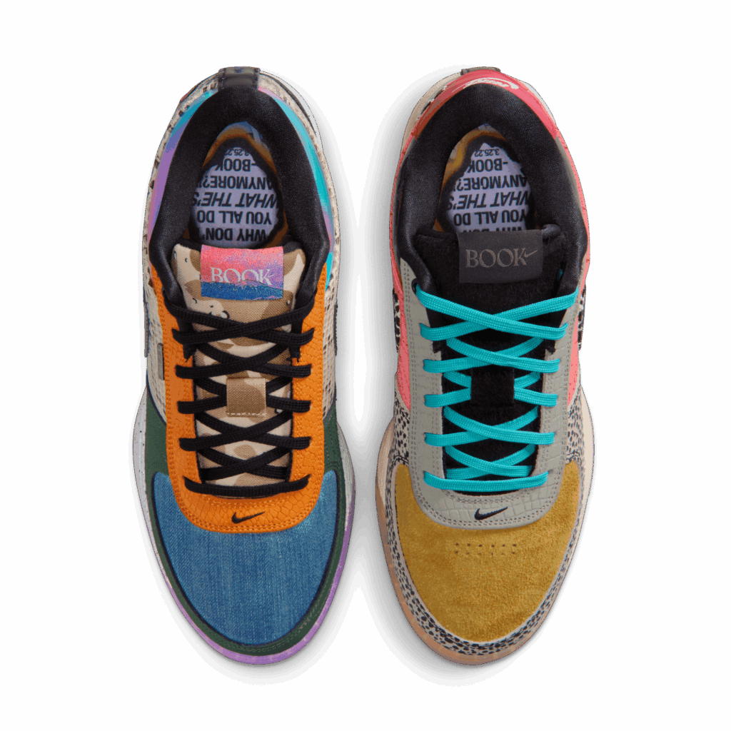 Sometimes the end is just a new beginning, but that doesn’t mean we won’t pull out all the stops to celebrate what has come before. This Book closes the chapter on the model with exuberant style. Each panel nods to previous colorway drops for a perfectly mismatched look. And details on the heel act as a reminder—this is just chapter 1.